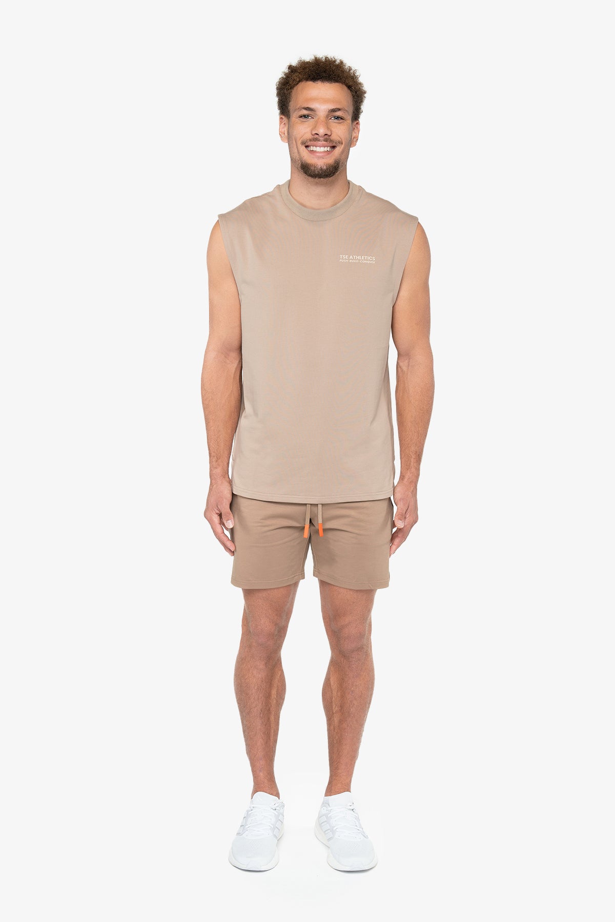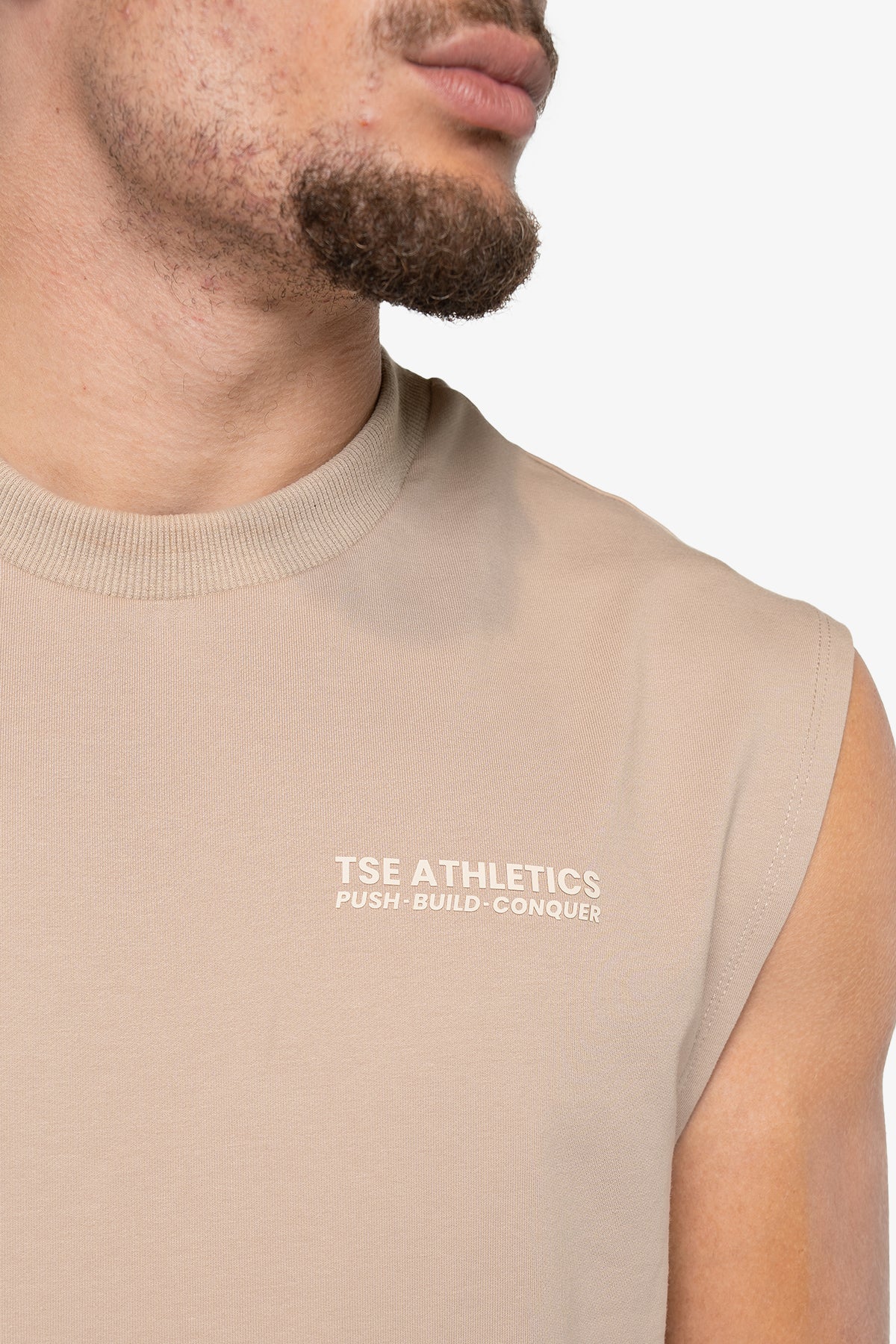 Ce CUT OFF a été conçu avec une attention particulière aux détails, notamment avec ses inscriptions en silicone sur le devant, subtilement appliquées en ton sur ton pour une touche d'élégance discrète. À l'arrière, le logo TSE Athletics se détache en orange vibrant, ajoutant une note de couleur dynamique qui capture l'esprit de la marque.