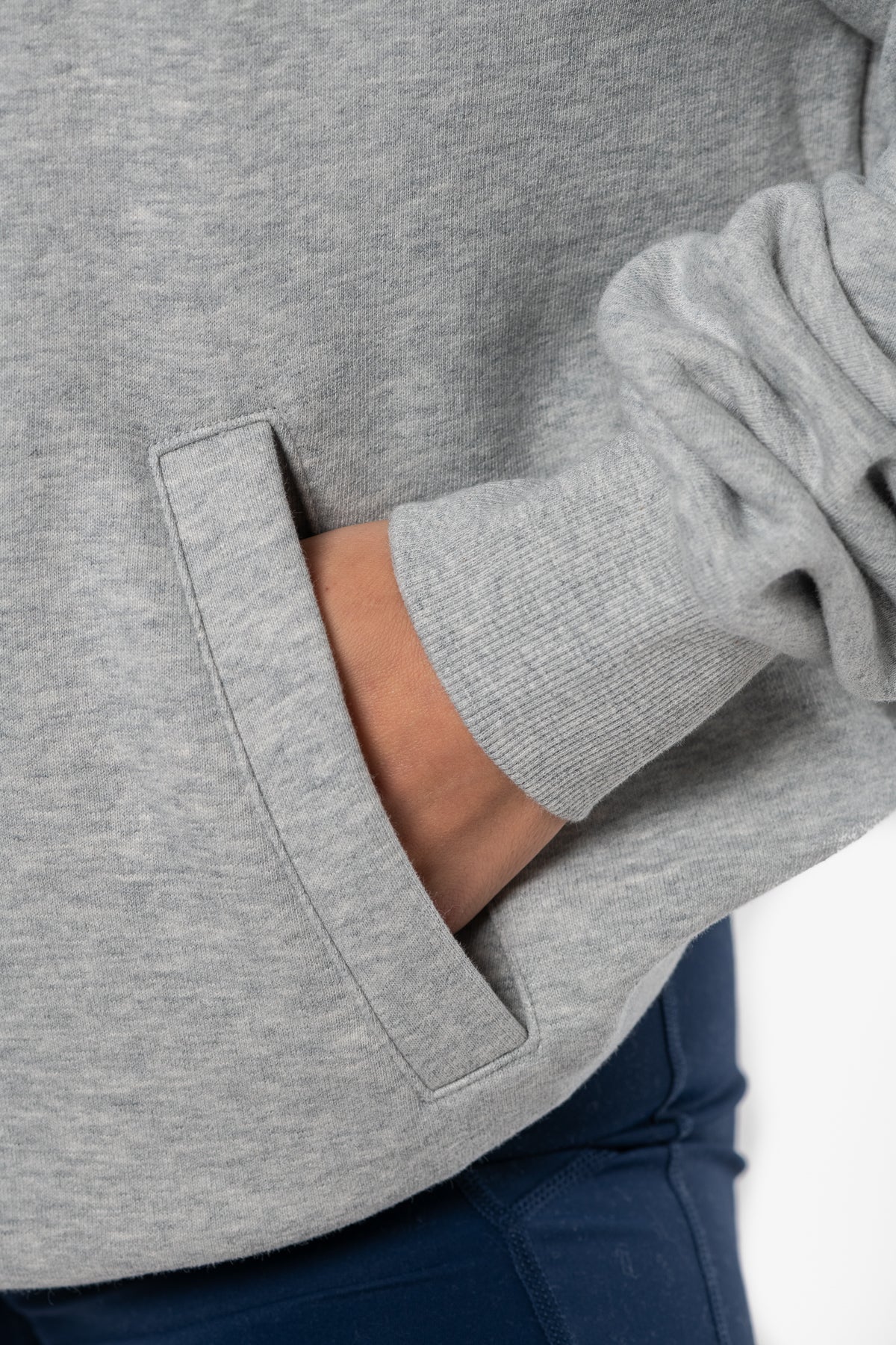 • Poche kangourou passepoilée sur l'avant du produit